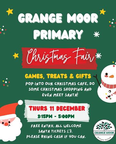 will be attending the Grange Moor Primary Christmas Fair on Thursday the 11th December. Come join us from 3:15pm- 5pm to do some Christmas shopping!!![]()